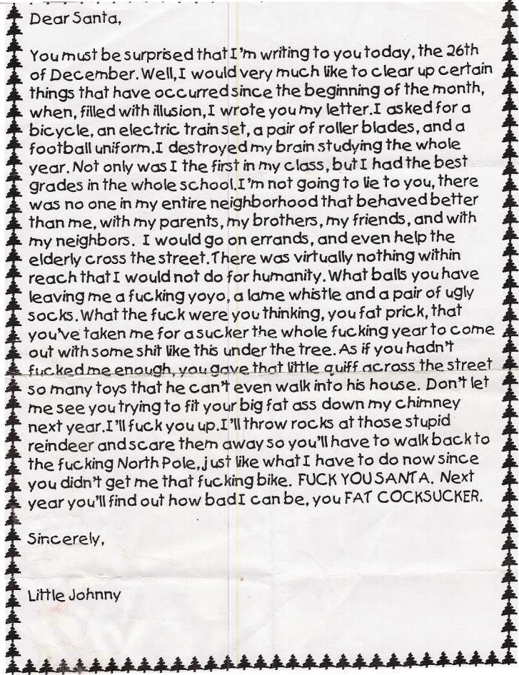 Greetings from Bombay, where it’s sunny and 90 degrees and does NOT feel like Christmas. But the holiday spirit is definitely everywhere you go. Anyways, if you click on the image to the left you’ll see one of the funniest Dear Santa letters ever. Even after reading it 50 times, it makes me laugh till the point of crying. Man I love Little Johnny.
