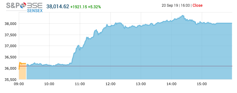 Friday, Sept 20th, 2019 will hopefully go down in Indian financial markets as the day the economic boom for the country got re-started. The markets zoomed over 1,900 points or 5.3% for their biggest gain in a decade. The fuse was lit by the Finance Minister Nirmala Sitharaman when she announced several economic measures that should help companies. The theory is that by helping companies they will invest and create more jobs which the economy sorely needs.