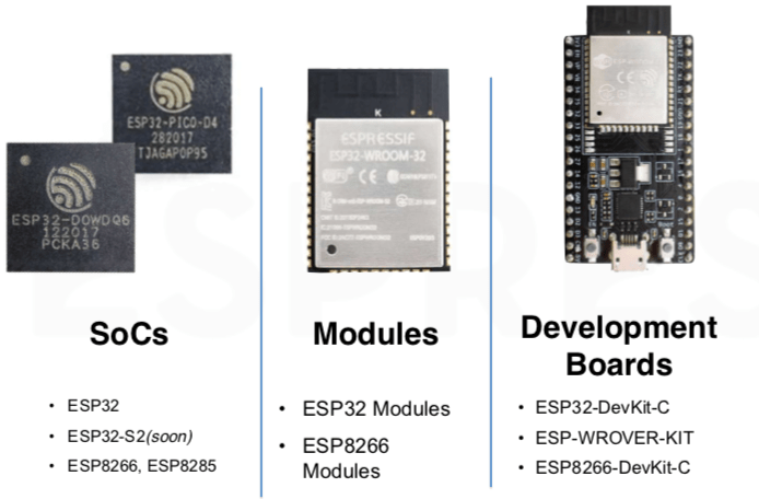 Along with the microcontroller you will need some firmware/software to run on it. All the MCUs have their own software but you can load other open source versions such as Arduino, FreeRTOS, MongooseOS, MicroPython or NodeMCU for example. The biggest constraint for these software options is the amount of memory available on the microcontrollers.