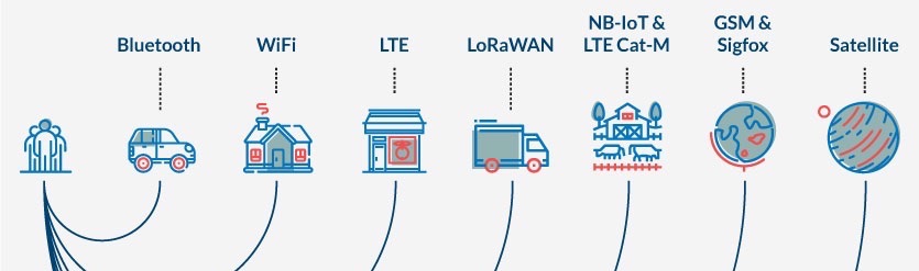 So that leaves us with all the wireless options which there are many. As always, it depends on your specific use case. So for example, an activity tracker could probably get away with Bluetooth connectivity since it just needs to connect to the phone and then the fitness app on the phone will upload the data to the cloud.