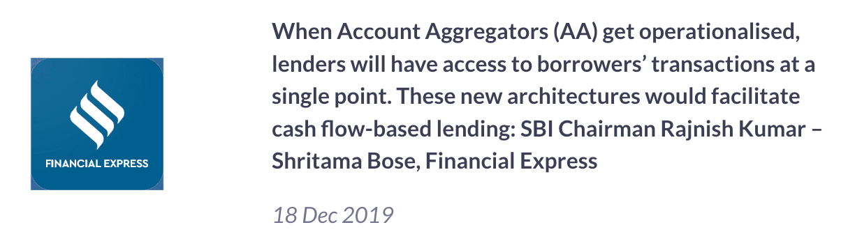 But, before we get into the specifics of what it can do, I wanted to write a bit about how we got here. The seeds of AA were planted in a September 2016 press release from the Reserve Bank of India (RBI). In the circular they talked about a new class of non-banking finance companies called Account Aggregators (NBFC-AA).
