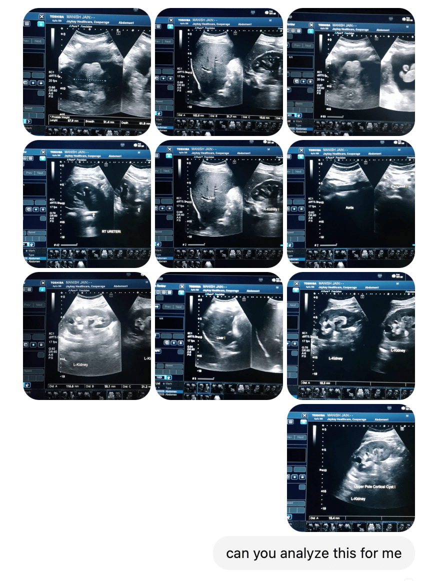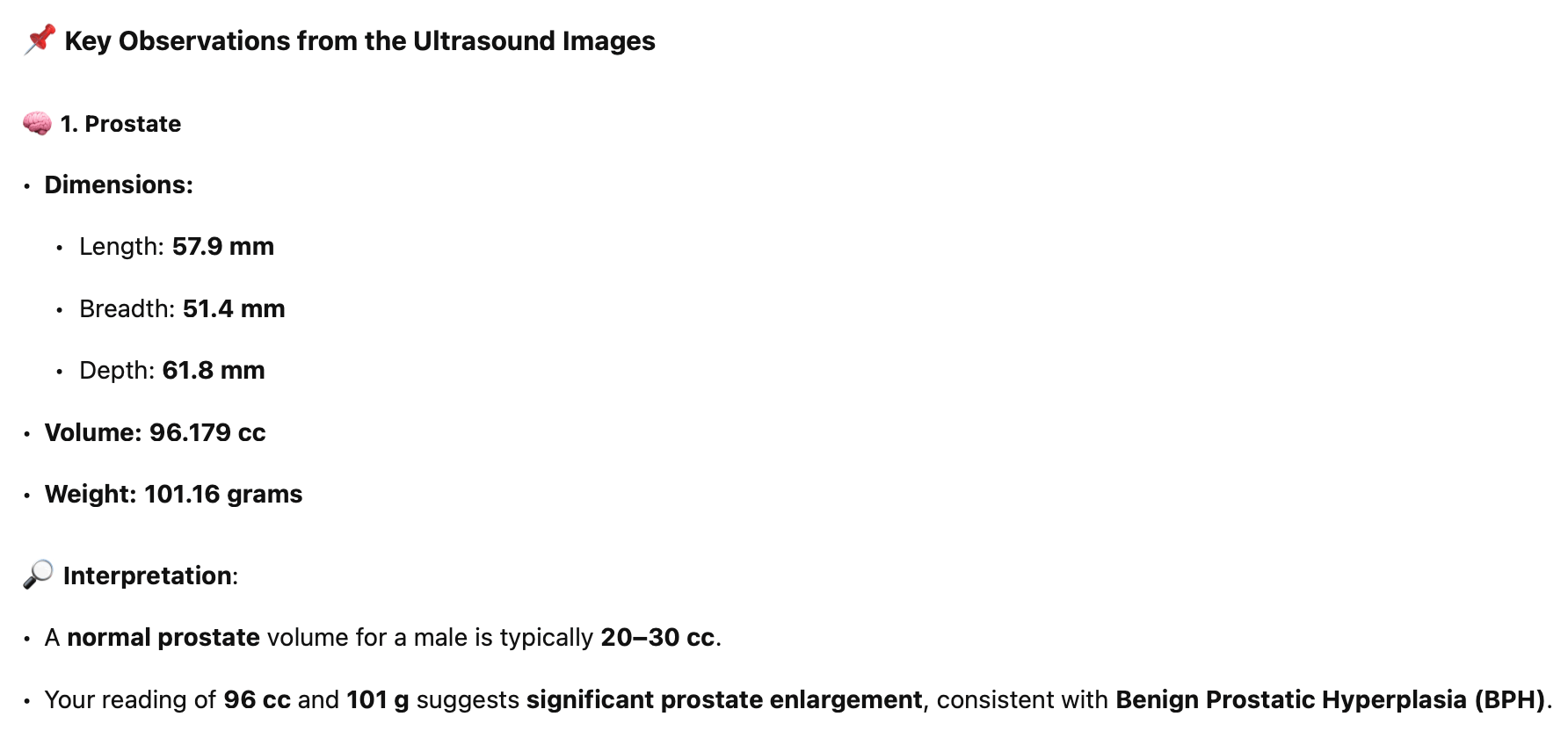 Naturally, I took those grainy WhatsApp images and fed them straight into ChatGPT. Within a minute, ChatGPT analyzed the images, identified the size of my prostate, and offered an interpretation of what it thought the issue might be.
